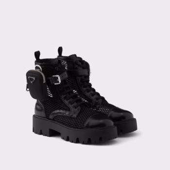 • Mesh fabric and brushed leather booties with pouch