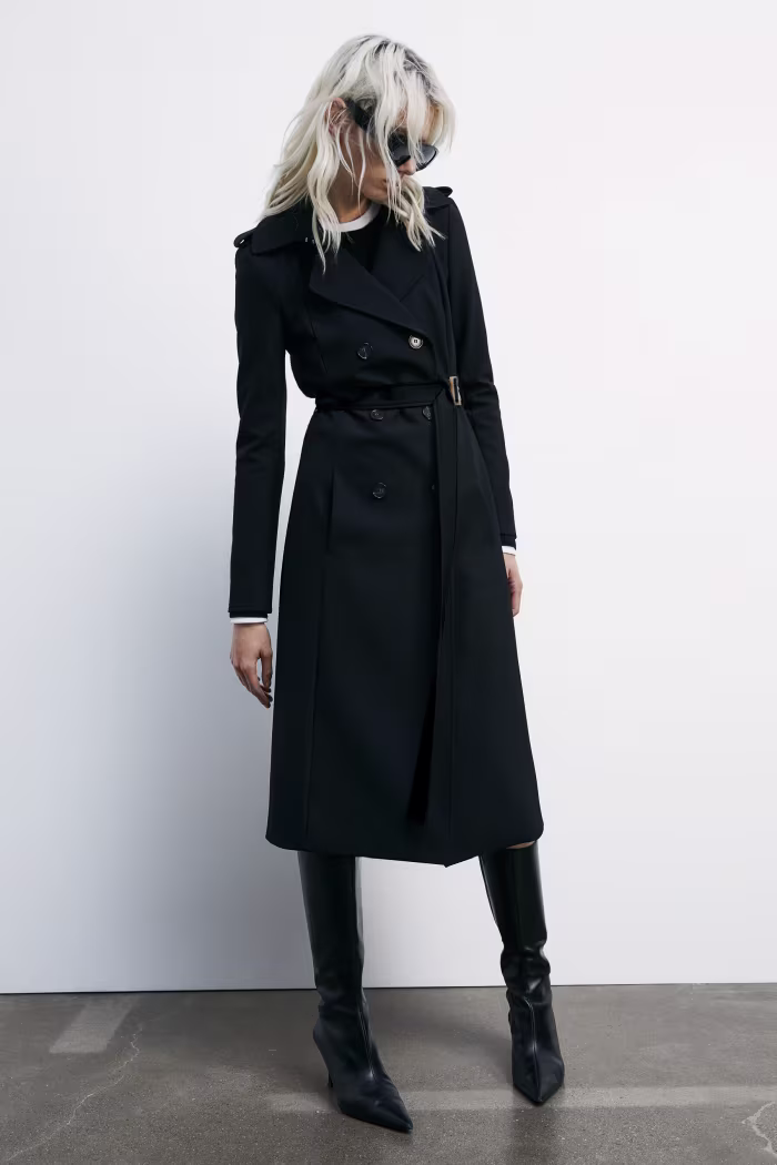Trench con fibbia in nylon bielastico